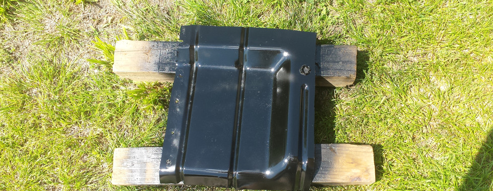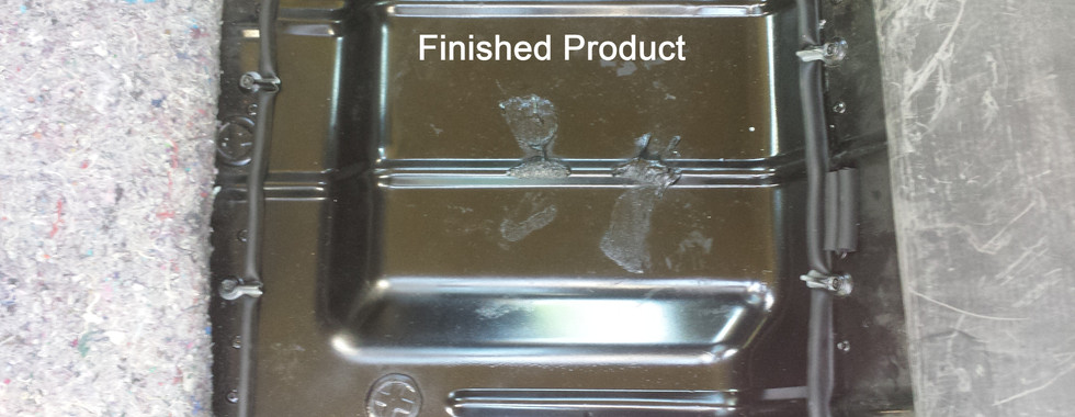 After cutting the square-ish pan section out, I bought some flat iron, weatherstripping, hold-down tabs, and paint to make the project look more professional. I cut the flat iron into pieces to make a shelf or mount for the pan; securing the flat iron to the vehicle's sheet metal with rivets. The weatherstripping was installed around the outside of the pan to reduce noise and seal the inside from the outside of the vehicle, albeit the carpet and insulation pad would provide most of the insulating characteristics.