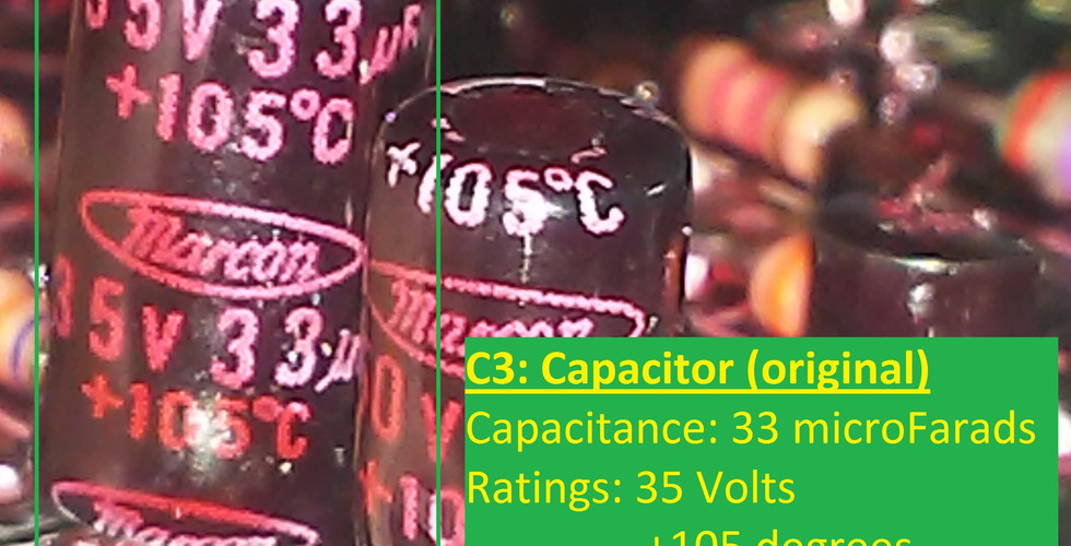 The pics below show the aftermath of replacing three of the electrolytic capacitors. Only three caps were replaced due to not having the appropriate capacitance size of one of them. Note: the voltage value on the capacitor is just the safety limit. As long as the capacitance is the same, a capacitor with a lower voltage value can be replaced with one that has a higher voltage, but not vice versa. Two of the caps on this board were replaced with those of a higher voltage capacity. Moving along, the white translucent looking material is a thermal coating of 388 Electronic Grade Silicone by American Sealants Inc. (ASi).